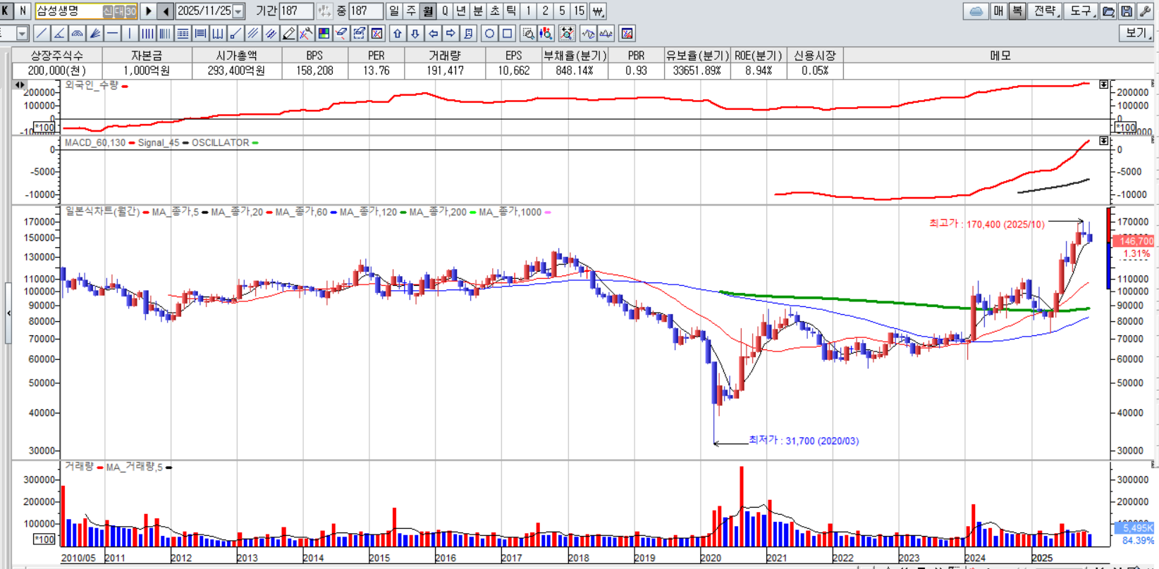 두 종목 모두 제가 보유한 종목인데, 신한지주는 너무 적게 사서 저를 아프게 하고 있고, 삼성생명은 요새 수익률 하락으로 저를 좀 괴롭히고 있는 종목입니다. (수익률이 마이너스라서가 아니라 수익률이 줄어서 '아야~아프다 아이가!' 하는 중입니다.) 그런데 이런 마음은 참으로 나쁜 마음입니다. 욕심 가득한 마음이니까요. 많이 올랐으면 쉬는 것은 인지상정입니다.